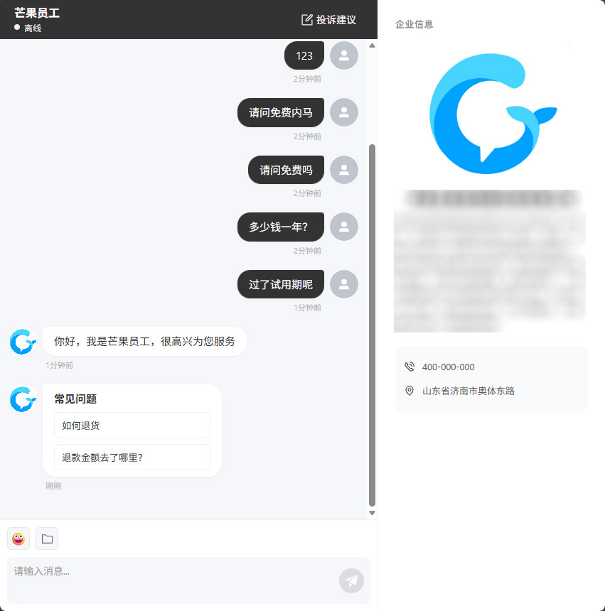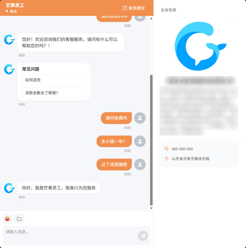 支持设置常用的快捷回复语和简单的欢迎词,减轻人工重复输入的负担。